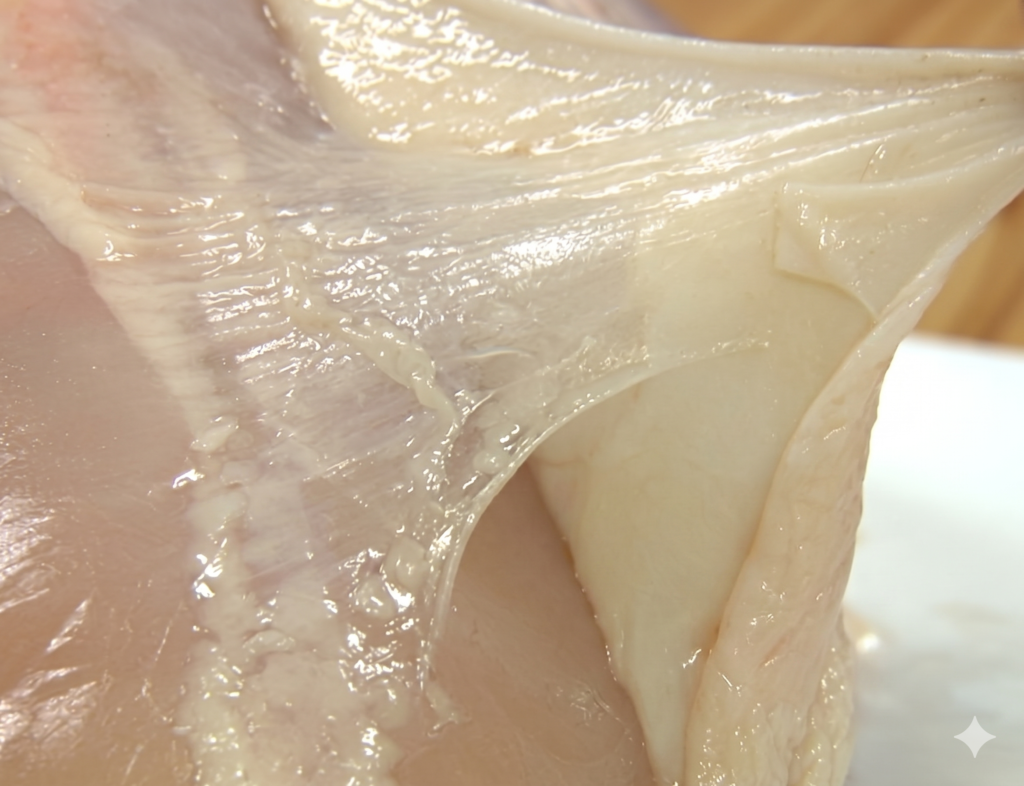 鶏肉を料理するとき、表面についている白い薄い膜みたいなの、わかりますか?